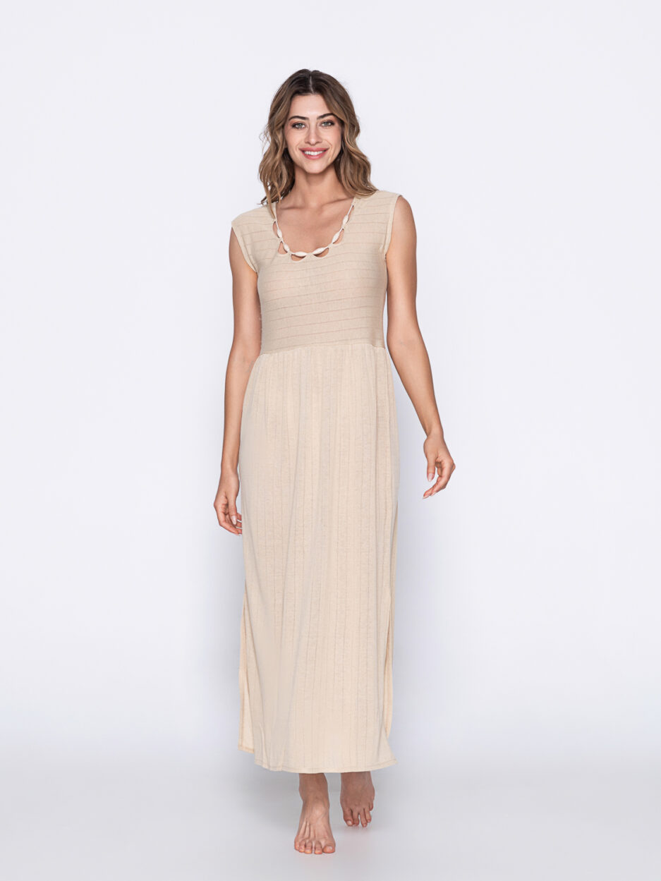 - Μοναδικά αξεσουάρ/κοχύλια στην λαιμόκοψη και σκίσιμο στα πλάγια.