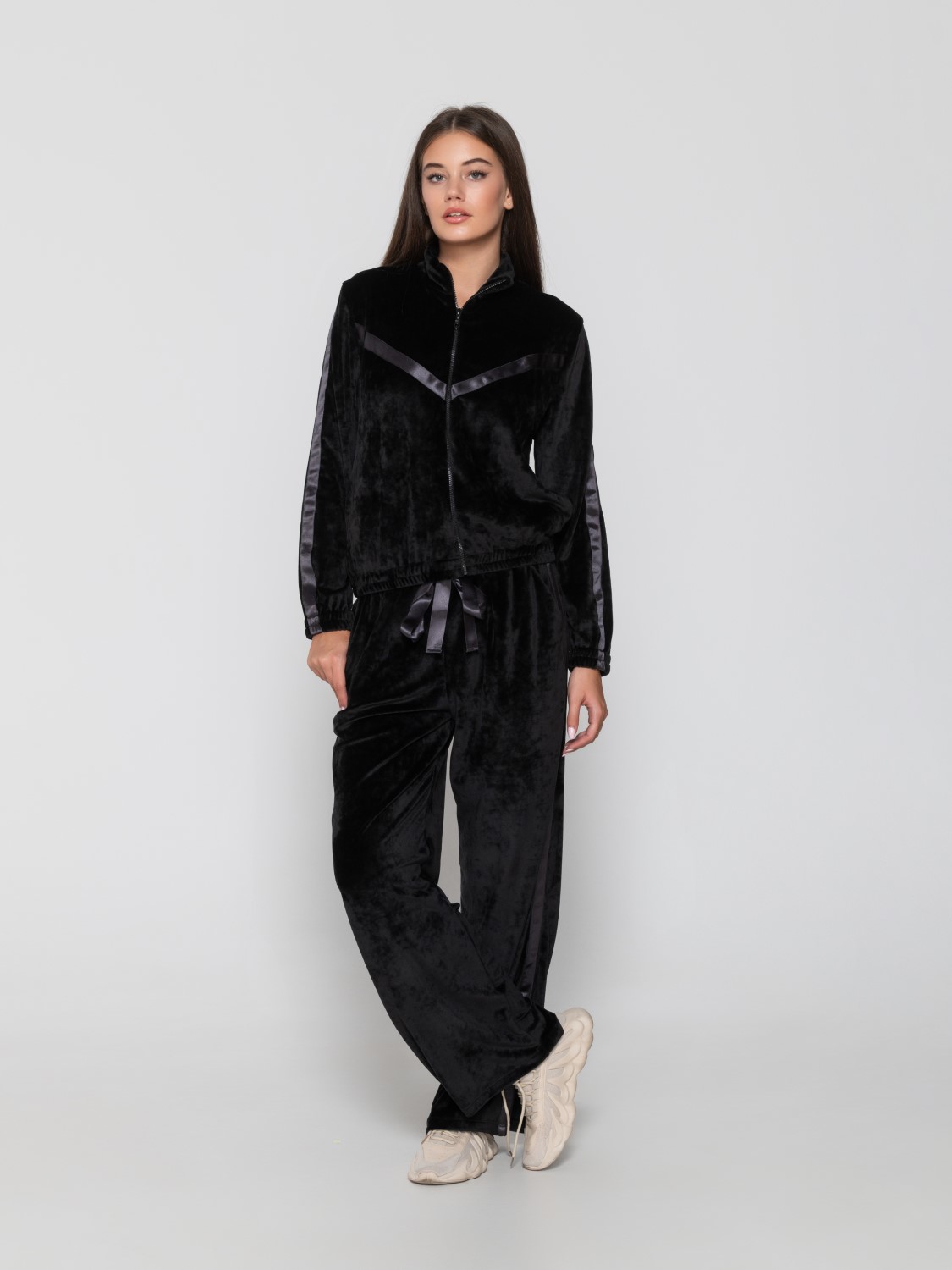 Velvet sweatshirt with a high neckline and satin ribbon details from the Devoted collection